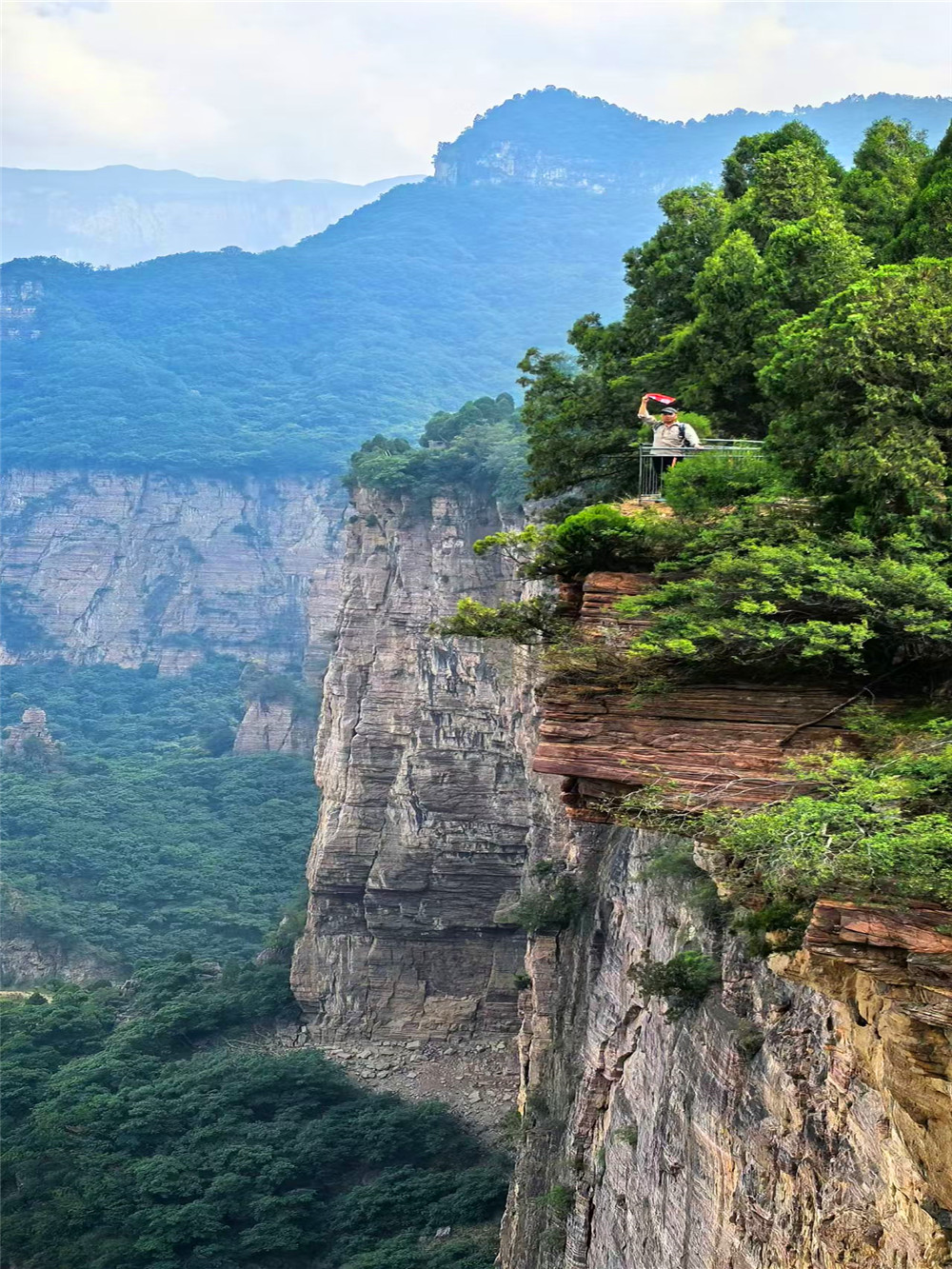 午餐后,穿行在绝壁之上的丛林之中,茂密的树林偶尔打开,瞬间感受到行在云端的感觉。看着悬崖绝壁上的下行小梯,不禁感慨,如此绝壁上竟有这样一条小路,妙哉妙哉!之后抵达【八里沟景区】,入住景区内宾馆。
