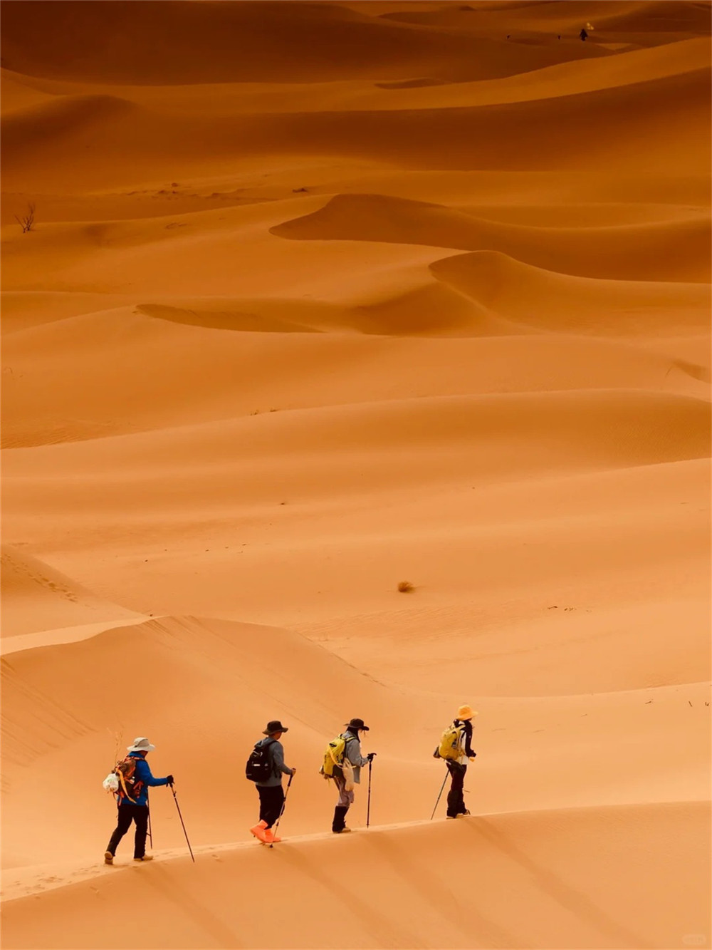 浩瀚的沙漠随处都是生命奇迹,你很有可能是地球诞生以来第一个踩在这片土地上的人类。徒步在某些时刻就是人生的一次停泊,远离繁杂的生活,走向陌生的远方。在行走中,清理自己的口袋,把烦恼、琐事、情绪……,一点点都丢在途中。理清思绪或者就是放空自己,把更多的位置空出来,让自己活得更轻松、更自在。