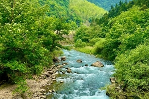 清澈见底的富春江水在古道旁汇聚成渠,构成了一幅幅色彩斑斓的现实版富春山居图
