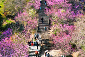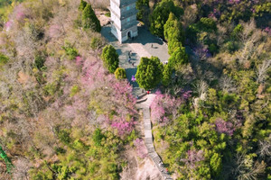 丹霞崖壁染着漫山紫荆