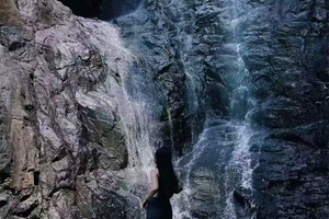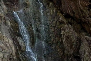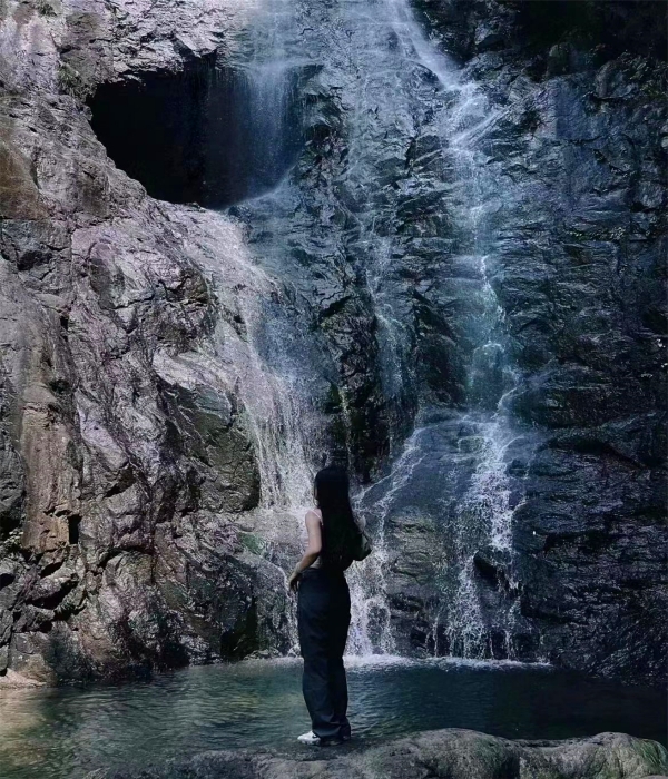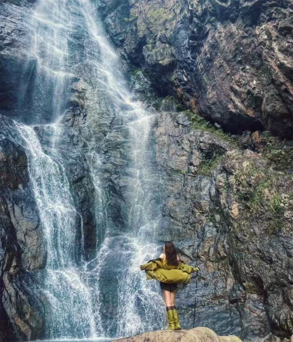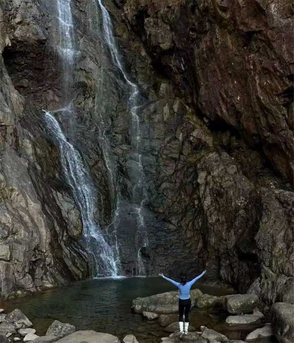 悬崖飞瀑,宛如白练当空。
