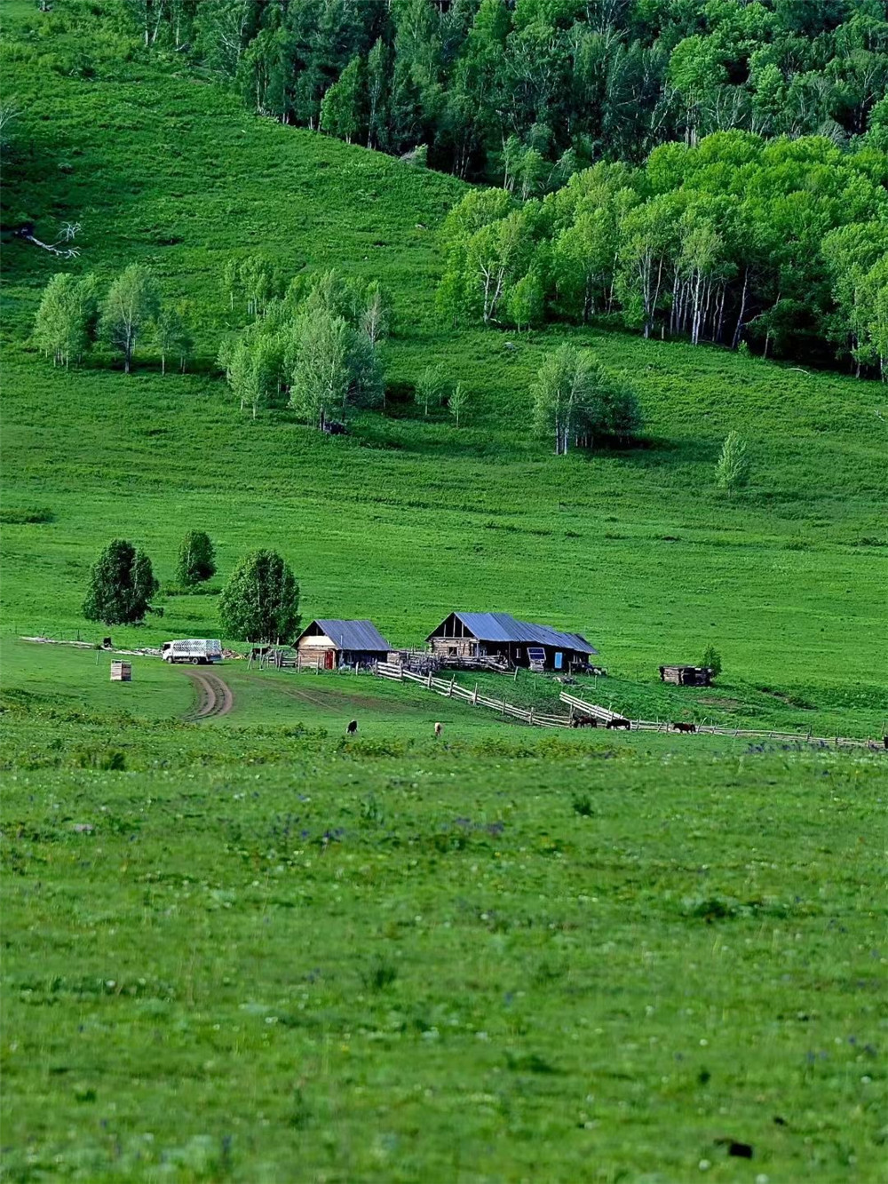 今日早起沿新晋网红公路——阿禾公路前往禾木风景区,每一个转弯都可能邂逅阿尔泰山的雪峰,或是哈萨克牧民的毡房炊烟。“神的自留地”禾木村,远处延绵的雪山,开满蒲公英的院子,在草地上悠闲吃草的马儿,在小溪里打闹的小狗,还有童话里的小木屋……这里的一切好像童话世界。抵达禾木后开启专属体验——旅拍,以禾木标志性的木屋、白桦林、草原为背景,为你定格美好瞬间。后可前往哈登观景平台俯瞰禾木村全景,亦或沿着禾木河徒步,尽情呼吸森林氧吧,亦或在桥头租一匹马前往美丽峰(费用自理,请选择正规马队),游览结束后前往酒店入住。