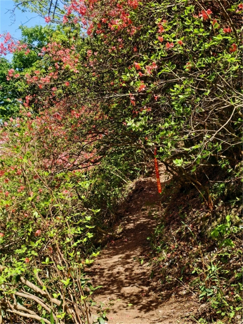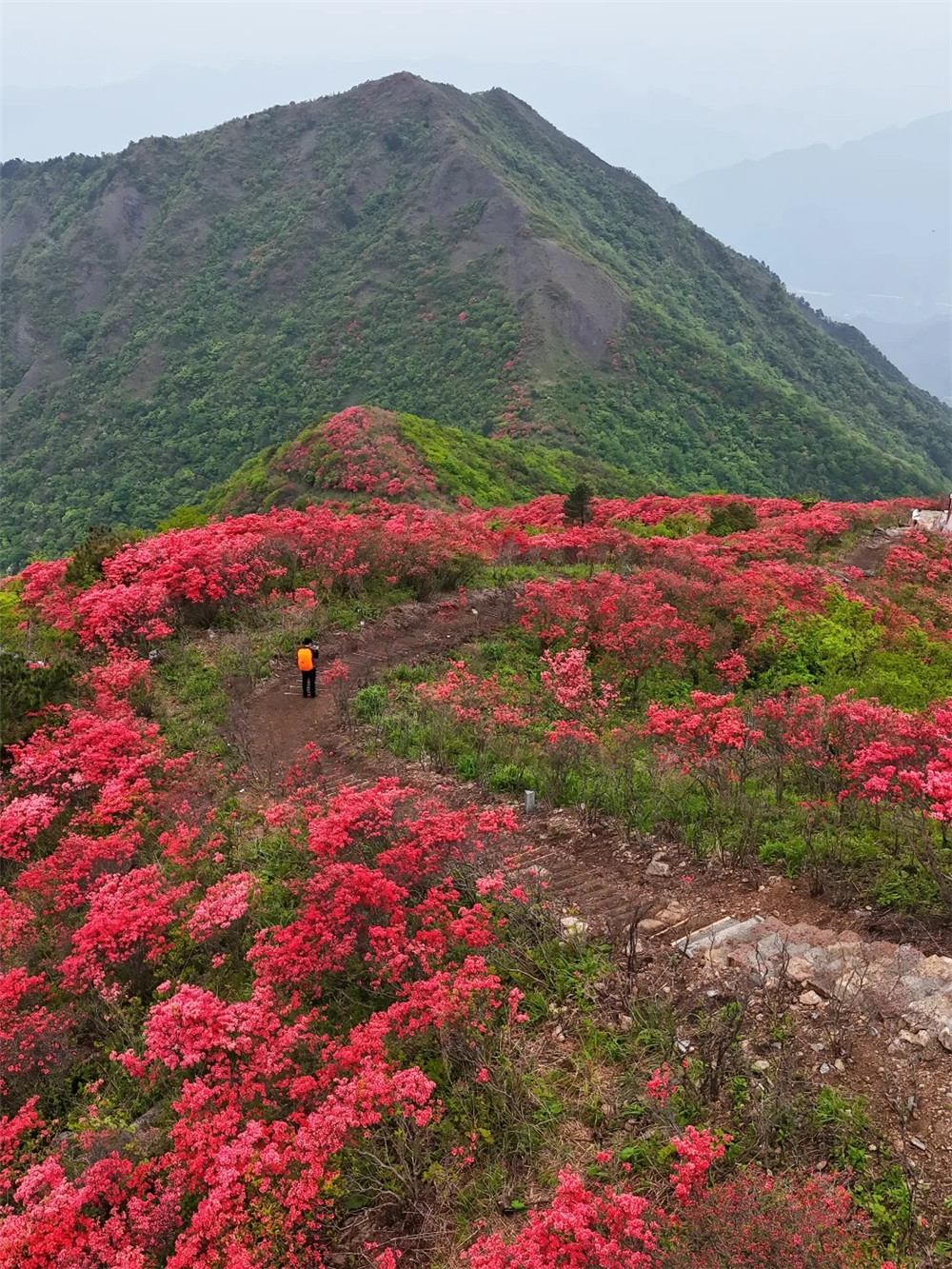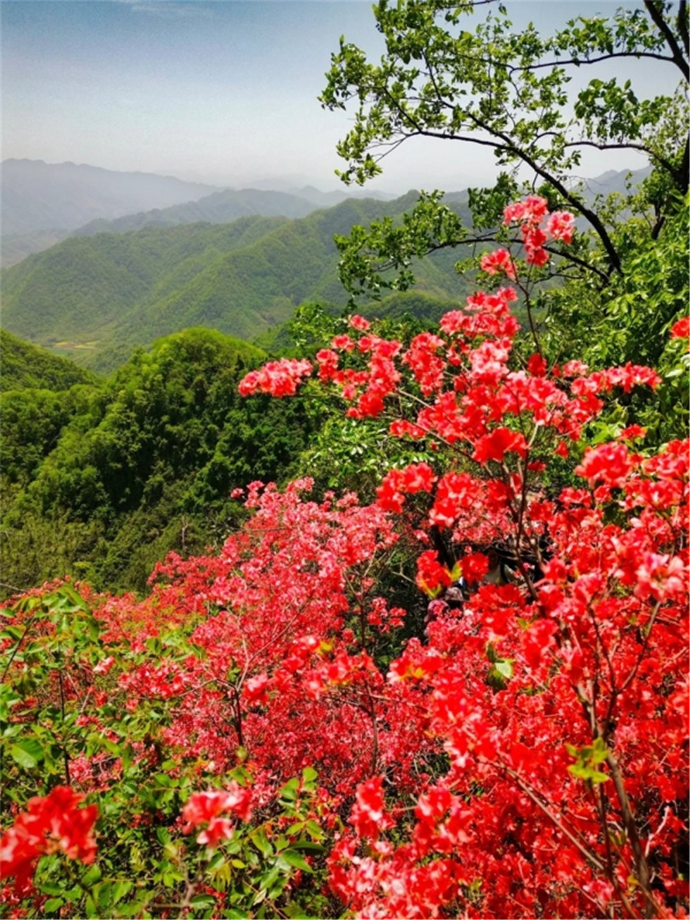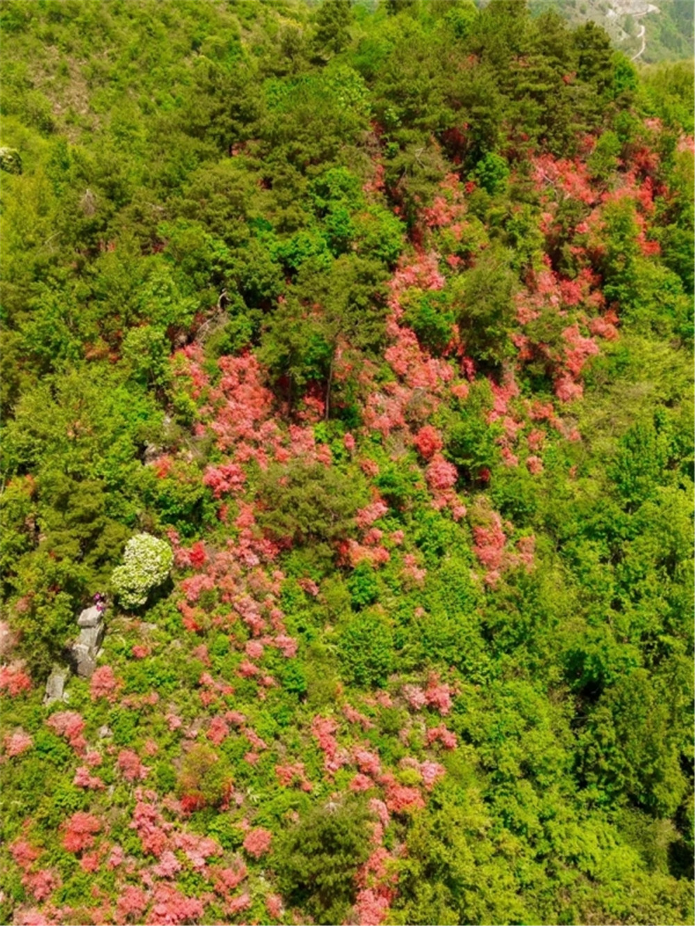 近百亩原生映山红沿山脊盛放